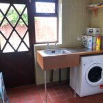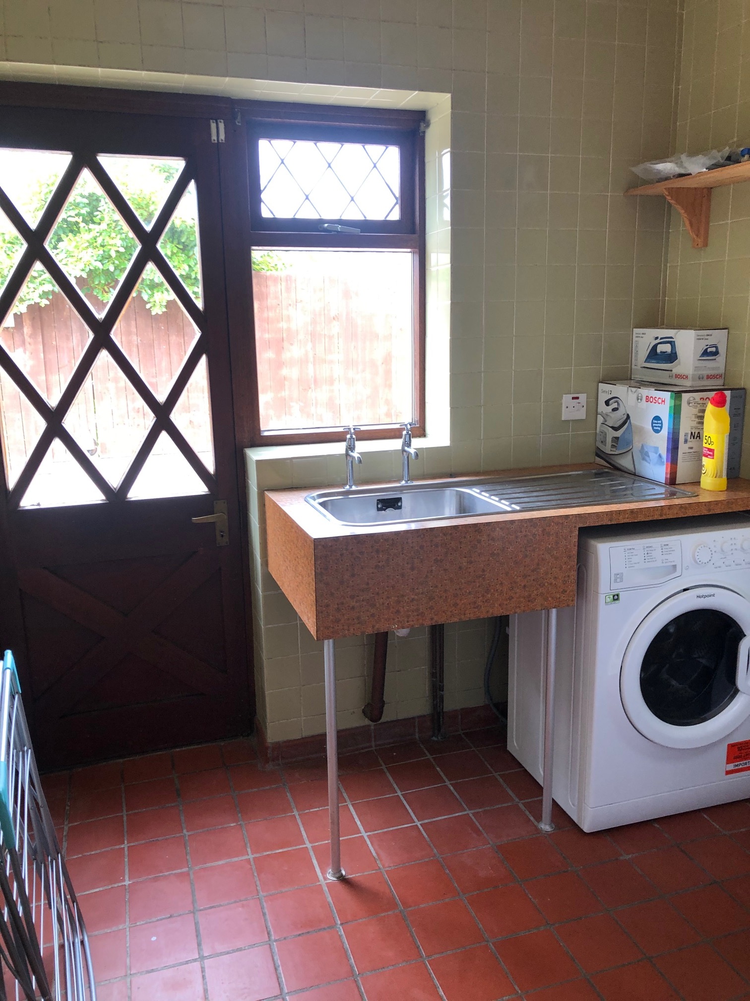 UTILITY ROOM: Base units, sink, side door leading to garden.