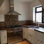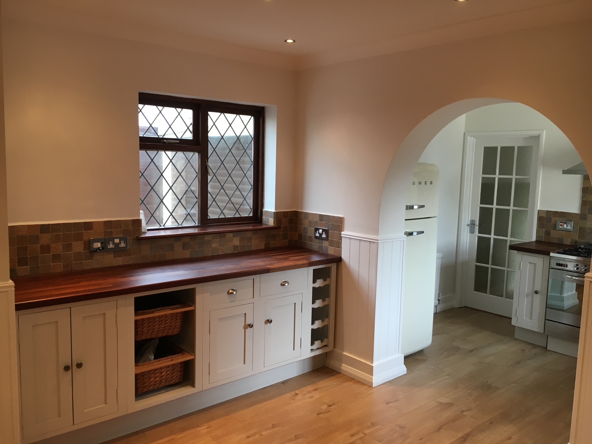 KITCHEN: A range of wall mounted and base units, butler sink, range cooker, dishwasher, integrated wine fridge, radiator. Window to side aspect.